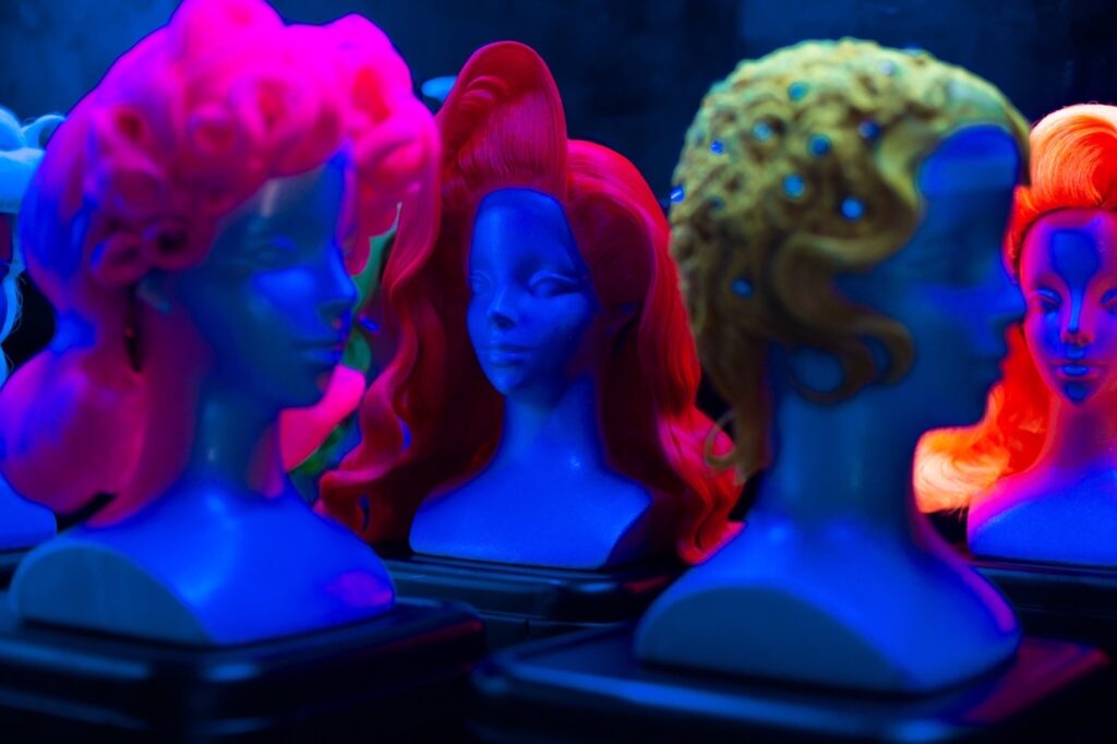 掲載されている作品は、 舞台・パフォーマンス・ドラァグ表現に対応したデザイン性の高いウィッグが中心です。
